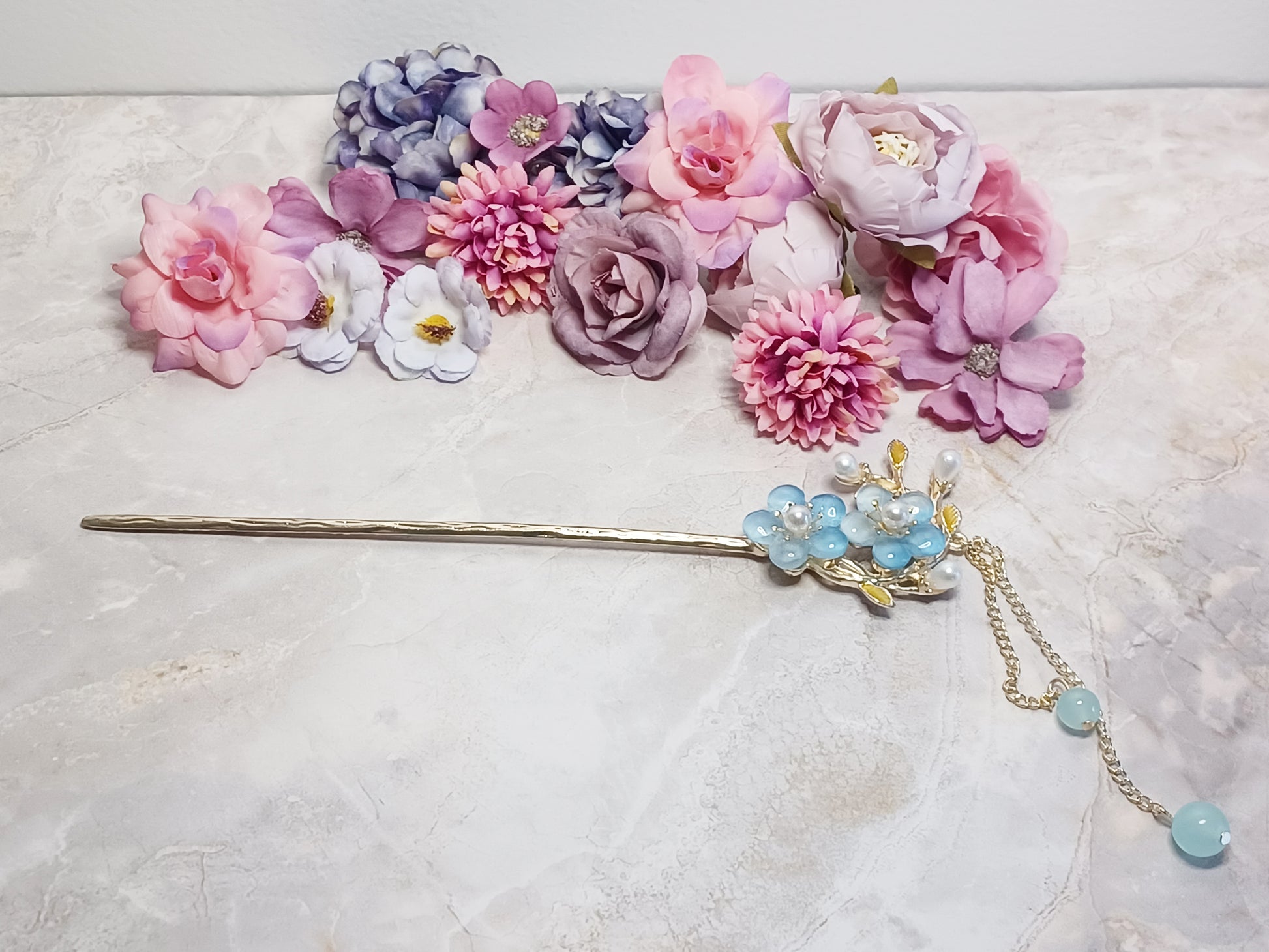 Flowers Hair Stick - 7" Retro Bun Holder